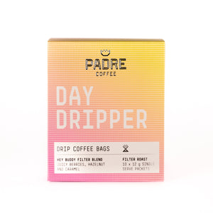 Day Dripper Drip Coffee Bags have finally landed at Padre! We're stoked to introduce yet another way to brew specialty coffee while you're on the move. Using our Hey Buddy Filter Blend, this single-serve pourover is the perfect companion for your next trip!