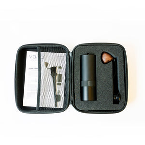 The Varia Hand Grinder is a high performance hand grinder that has been specifically designed with coffee connoisseurs in mind. Packaged in a neatly presented in a retail ready travel case, you will be able to keep your grinder clean and safe as well as have plenty of room to store your favourite filter papers inside.