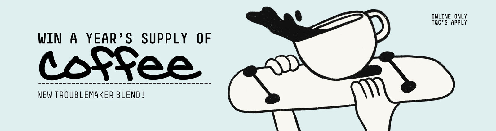 To celebrate the launch of our bold, new coffee blend, Troublemaker, we're giving one lucky coffee lover the chance to win a year's supply of our new blend.