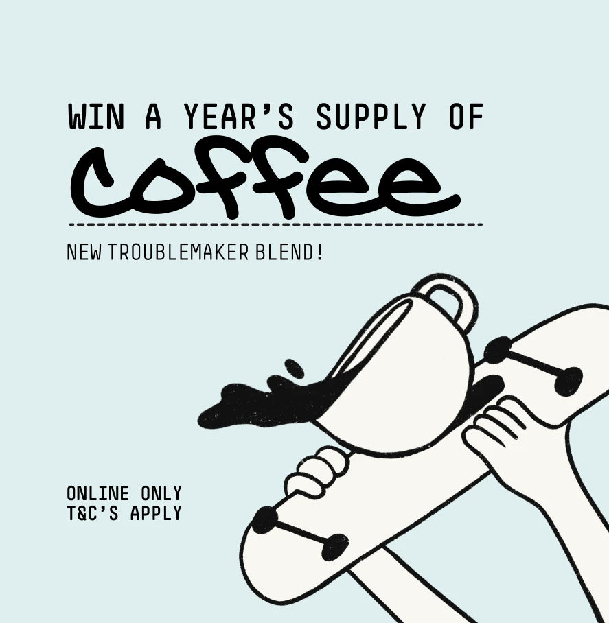 Purchase a 250g, 500g, or 1kg bag of Troublemaker as either a one-off purchase or in line with a coffee subscription between Monday, 19 August, and Monday, 2nd September 2024, and you are automatically in the draw!