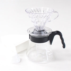 If the idea of pour over or manual brewing seems a little daunting, this kit is the perfect first step into the world of filter brewing! The filter coffee geniuses at Hario have created the ultimate starter pack that includes a Hario 2 Cup V60, a decanter to brew into, a measuring spoon and 40 2 Cup V60 filter papers.